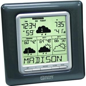 WEATHER DIRECT WD-3103U WEATHER DIRECT(R) INTERNET-POWERED WIRELESS FORECASTER. FREE ACCURATE FORECASTS WITH NO SUBSCRIPTION REQUIRED, 4-DAY ACCURATE WEATHER FOR OVER 60,000 LOCATIONS IN THE UNITED STATES AND CANADA INCLUDING PARKS, SPORTS VENUES, GOLF COURSE & MORE, 4-DAY FORECASTS: SPECIFIC FORECASTS FOR EACH MORNING, AFTERNOON, EVENING & NIGHT, DAILY HIGH/LOW TEMPERATURE FORECASTS, INDOOR/OUTDOOR TEMPERATURE, SCROLLING LOWER LCD SECTION: SCROLLS WIRELESS OUTDOOR TEMPERATURE, SELECTION LOCATION, SUNRISE, SUNSET & SELECTION LOCATION FORECAST, MONITOR YOUR BACKYARD TEMPERATURE FROM ANYWHERE IN THE WORLD WITH THE INCLUDED WEATHER CLUB MEMBERSHIP, UPPER-RIGHT CORNER OF LCD TOGGLES DATE, SECONDS & INDOOR TEMPERATURE, TIME ALARM WITH SNOOZE, TIME & DATE SETS ITSELF, E.L. BACKLIGHT FOR EASY NIGHTTIME VIEWING, 330-FT WIRELESS RANGE, NO WIFI OR SOFTWARE INSTALLATION NECESSARY, HIGH-SPEED INTERNET, NETWORK ROUTER & COMPUTER FOR WEB-BASED SET-UP ARE REQUIRED, 1-YEAR MANUFACTURER WARRANTY