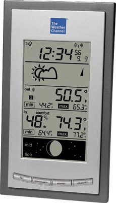 * LaCrosse weather forecaster features weather icons and weather tendency indicator * Trust a TV weatherman or your own common sense supported by data you collect? * Forecast icon based on changing barometric pressure * Moon phase and tide indicator * Barometric pressure tendency arrow * Atomic time and date with manual setting * Automatically updates for Daylight Saving Time (on/off option) * Time alarm and time zone setting * 12/24 hour time display * Perpetual calendar * Can Receive Up to 3 Sensors * Wall hanging or free standingCheap "LaCrosse Wireless Weather Station" Discount Review Shop