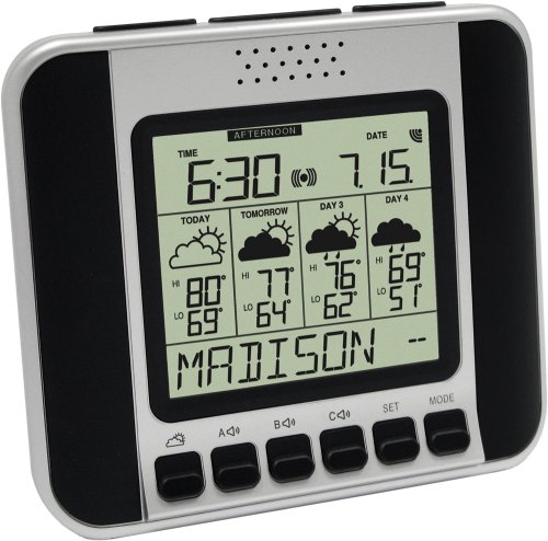 It's a weather stations with a voice¿ "Good morning John (Put Your Own Message Here), here's the forecast for Madison, Wednesday, July 15th¿" Create your own custom message and it will say it before the forecast¿"Wake Up! Today's the Big Game Day!" or "Good Morning" (Your Name Here)". The audio forecast button plays the current forecast and the A/B/C speaker buttons play information that you select. It's more than weather... listen to your choice of news headlines, enterainment, sports and more. Wake up to the information that you want to hear. Weather Direct by La Crosse Technology gives you easy access to the same quality weather as meteorolgists 24 hours-a-day without turning on a TV or computer! It works without Wi-Fi, there is NO software to install, and the forecasts are totally FREE. NO subscription required. Choose the forecast information that you want from a list of over 60,000 locations in the United States and Canada including your hometown, golf courses, parks, sports venues and more. Visit www.weatherdirect.com/places for a full list of forecast locations. Now it's easier to plan your day... receive forecasts for each morning, afternoon, evening and night for today, tomorrow, day 3 and day 4. You'll know to pack your umbrella for an afternoon shower, or bring a jacket for a cool evening at the game. The wireless display also features automatic time and date, time alarm with snooze and forecasts for the daily high and low temperature. The bottom LCD line scrolls your wireless outdoor temperature, selected city name, sun rise/set and forecast. The weather gateway connects to your network router with the included LAN cable to send secure wireless forecasts to the display - 24 ours a day without turning on a TV or computer. A wireless range of 330 feet allows you to put the display device almost anywhere you want. A PC is only required for one-time easy set-up or to customize features. High-speed Internet and network router are required.Cheap "La Crosse Technology WA-1140U Weather Direct 4-Day Talking Internet-Powered Wireless Forecaster" Discount Review Shop