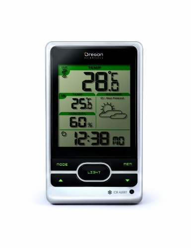 Oregon Scientific BAR206 Weather Forecast Temperature Station forecasts the weather 12-24 hours in advance, displays indoor and outdoor temperature, and sets itself to the US Atomic Clock signal. In addition, keeps track of your home's humidity levels. Features:Outdoor temperature range -4 degrees Fahrenheit to 140 degrees Fahrenheit (-20 degrees Celsius to 60 degrees Celsius) Indoor temperature range 23 degrees Fahrenheit to 122 degrees Fahrenheit (-5 degrees Celsius to 50 degrees Celsius) Indoor humidity range 25% - 95% Signal frequency 433 MHz Transmission range of 98 feet (unobstructed) Outdoor temperature (up to 3 channels)Weather forecast iconIce Alert with Green LED lightIndoor temperature and humidityDaily Hi/Lo memory for temperature and humidity (toggle)Atomic clock/CalendarBacklightMain unit powered by 3 AA batteries (not included) Remote sensor powered by 1 AA Battery (not included) 1 year manufacturer’s warranty User Manual May we also suggest:BatCheap "Wireless Weather Station" Discount Review Shop